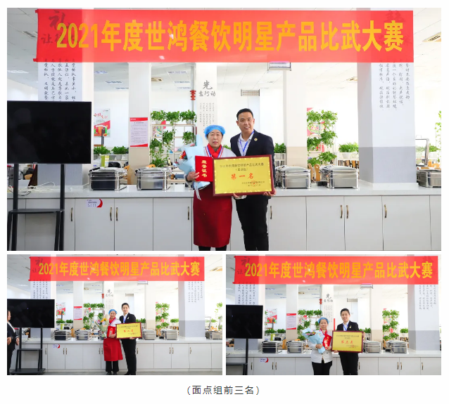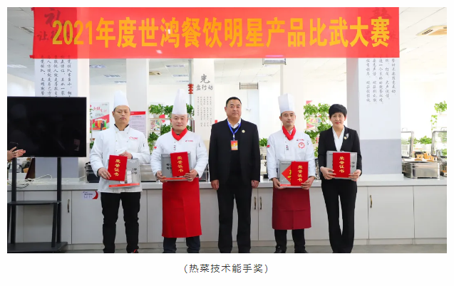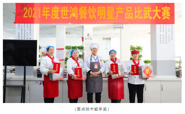 厨艺比赛分为热菜组和面点组两项比赛,每位选手都是精心准备、认真制作,激烈对决,缤纷呈现,将这一年的努力付出和用心态度都带入参赛作品中。经过评委们严谨认真的评审后最终评选出热菜组和面点组的前三名和技术能手奖。颁奖环节是最令人激动的环节,每一位获奖者由颁奖嘉宾用鲜花邀请至主席台,现场尽是大家热情的祝贺和掌声,充满仪式感的颁奖环节令世鸿的家人们开心而感动。大赛是对各项目厨艺基本功的检验,同时利用这个平台可以使大家相互取长补短,厨艺技能得以提升。新的一年,857直播将紧跟时代步伐,不断推陈出新。做高品质团餐,更好的服务于社会。